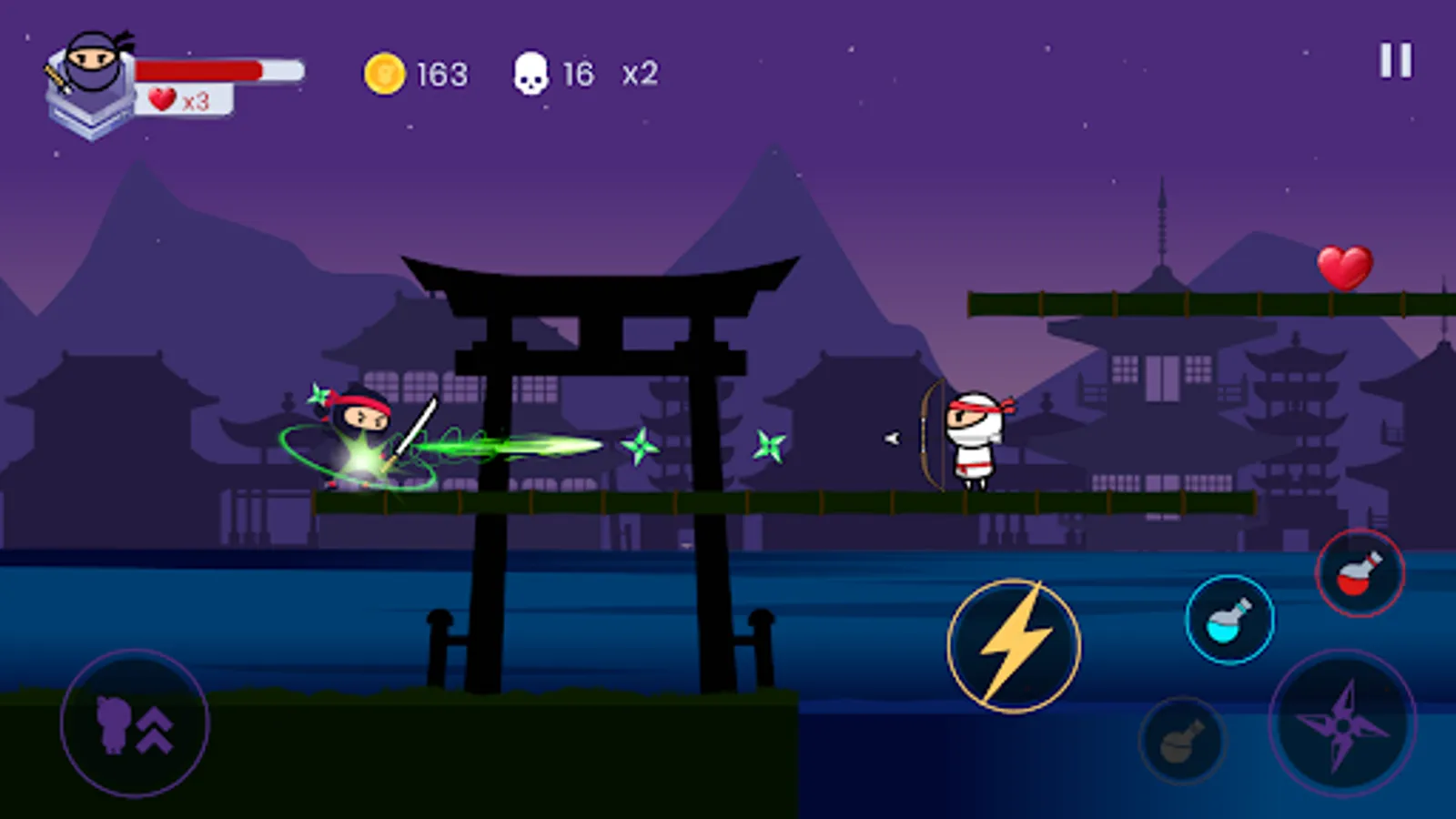 A mysterious shinobi named Takeshi has appeared, ready to take on the evil ronins who have been terrorizing the country. With its dark ninja costumes, he can easily blend himself with the darkness but the dangerous ronins can still spot him easily. Although he has powerful ninja jump force but he’s clumsy. Our ninja warrior needs your help to control when he should jump high or slide or engage in sword fight to defeat his ronin enemies. So your job is to help direct shinobi’s jump force so he can move with precision in this ninja platformer game.