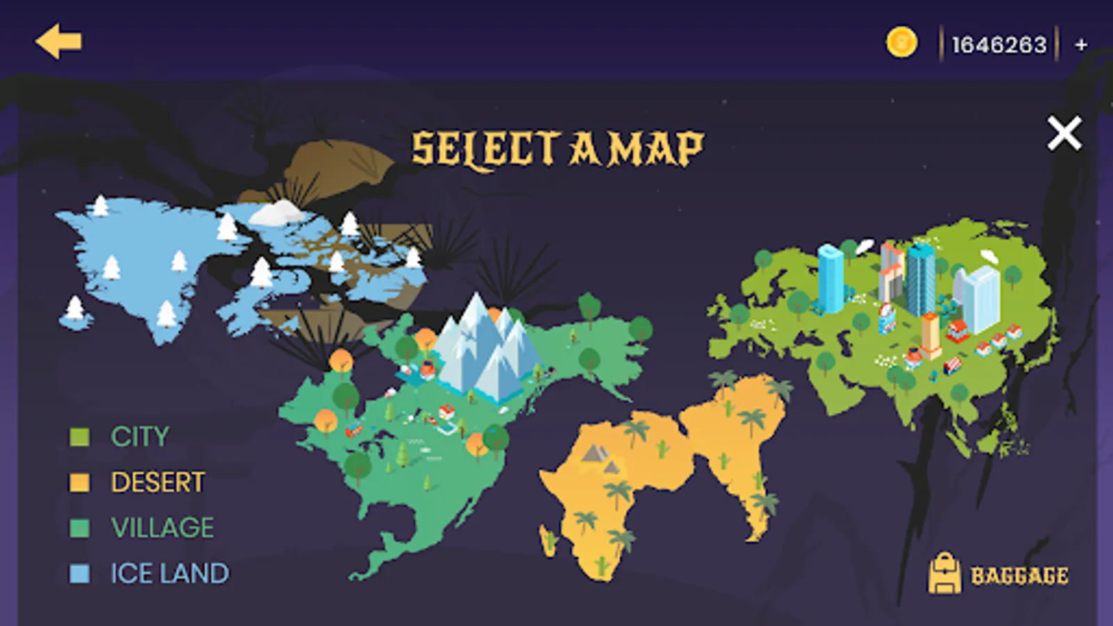 🏜 Three locations to choose from: Dessert, Village, City
