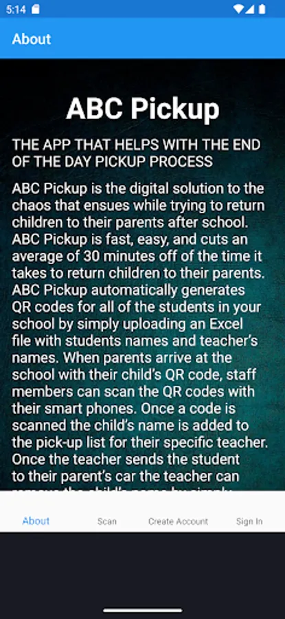 ABC Pickup is the digital solution to the chaos that ensues while trying to return children to their parents after school. ABC Pickup is fast, easy, and cuts an average of 30 minutes off of the time it takes to return children to their parents. ABC Pickup automatically generates QR codes for all of the students in your school by simply uploading an Excel file with students names and teacher’s names. When parents arrive at the school with their child’s QR code, staff members can scan the QR codes with their smart phones. Once a code is scanned the child’s name is added to the pick-up list for their specific teacher. Once the teacher sends the student to their parent’s car the teacher can remove the child’s name by simply clicking on it.