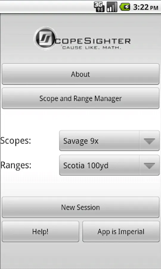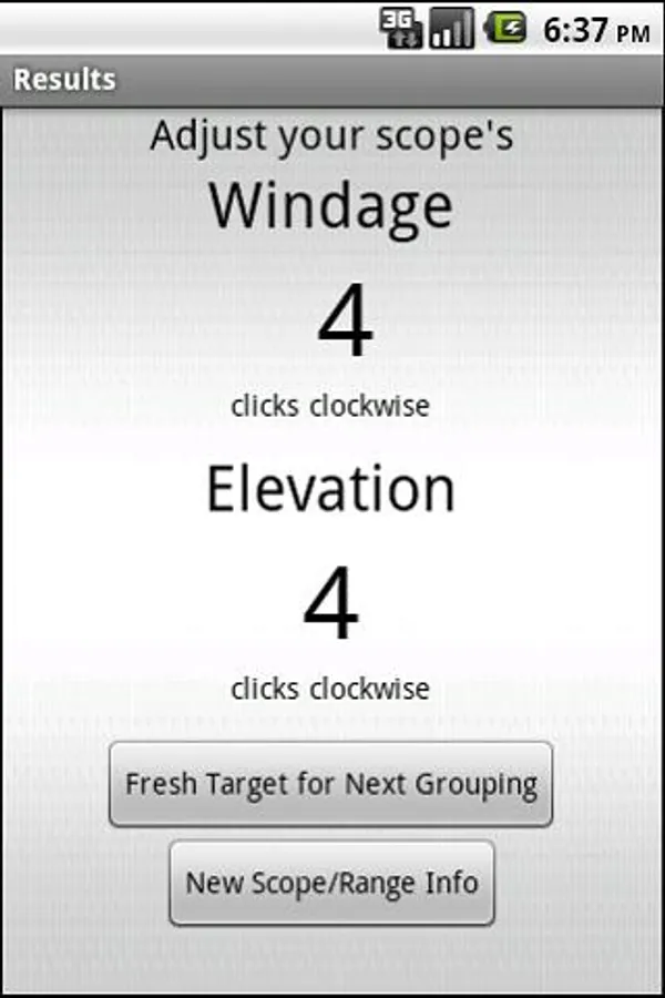 Calculates the adjustments necessary to sight in a rifle scope using touch input on a virtual target, and specs for the scope and the range.