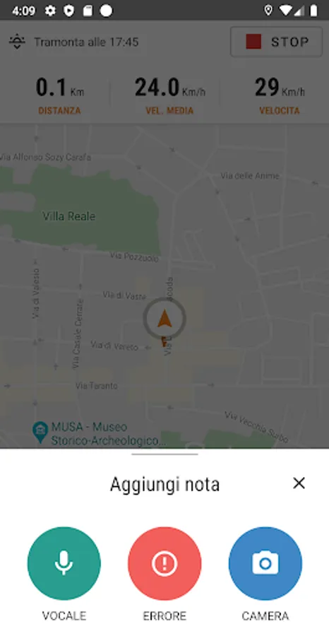- record vocal, textual and geolocated photo notes, which are displayed directly on the route map, so as to find them easily and study the topic with the student;