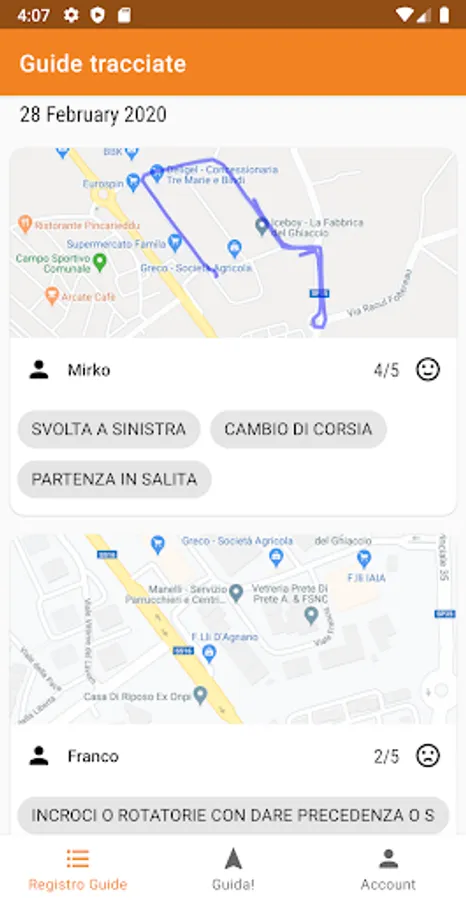 Guide and Learn, in fact, allows you to manage your students' guides, view and trace the route on the map, insert vocal, textual and photo notes to report errors made while driving, rate the guide, share the final result with your students and much more.