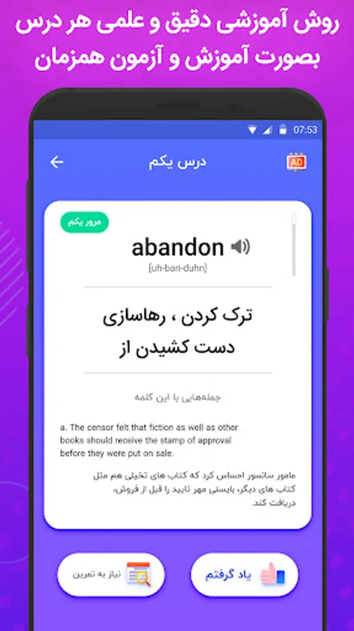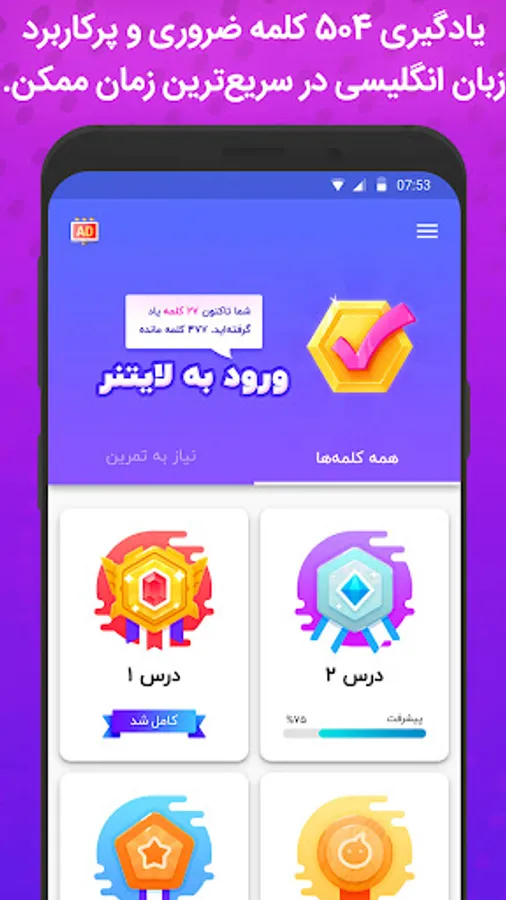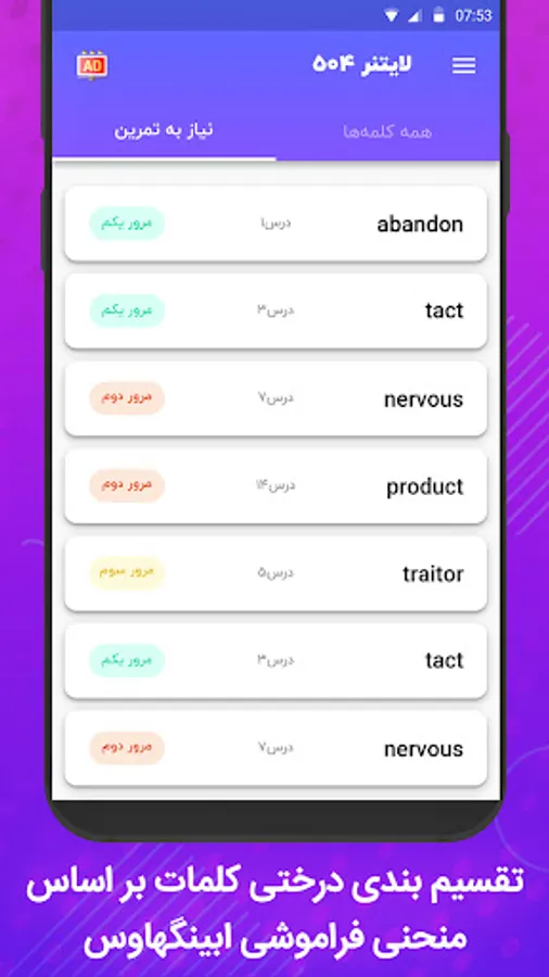 🕮 اجرای برنامه آموزش 504 لغت ضروری زبان انگلیسی با استفاده از متد لایتنر در تمام دستگاه ها
