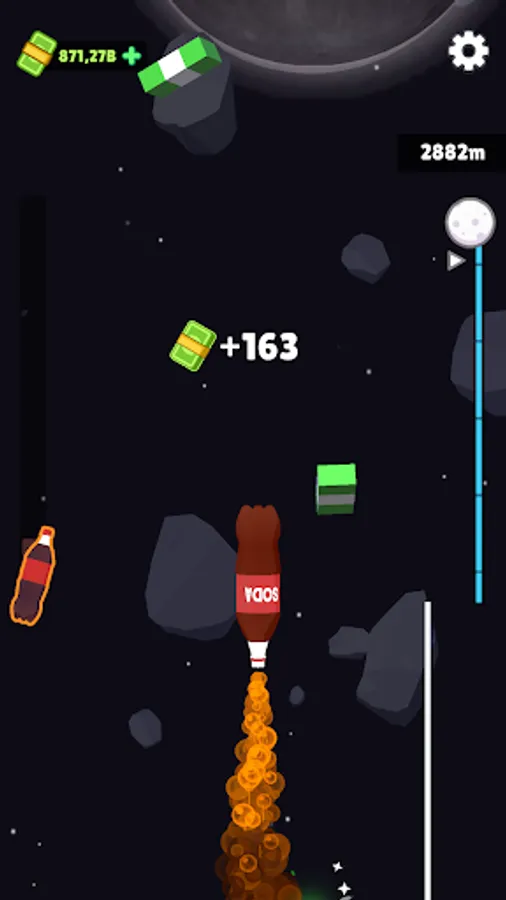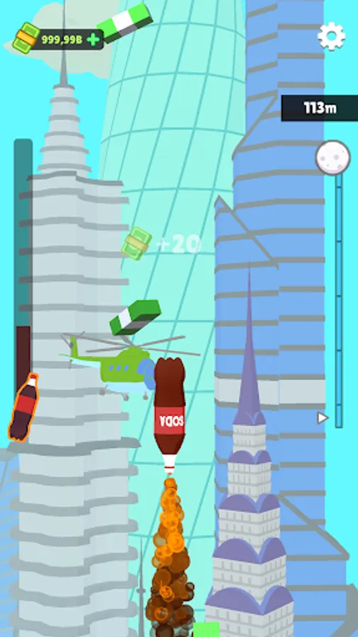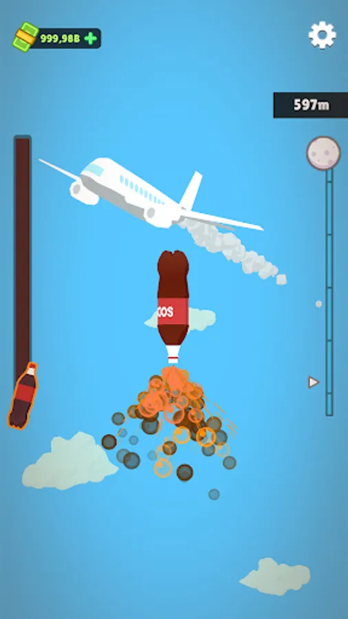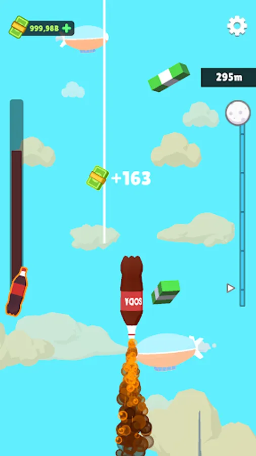 The controls are simple, tap to shoot soda bottle to the sky and control it to collect cash, which you can later spend to improve your experiment effect!