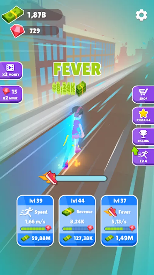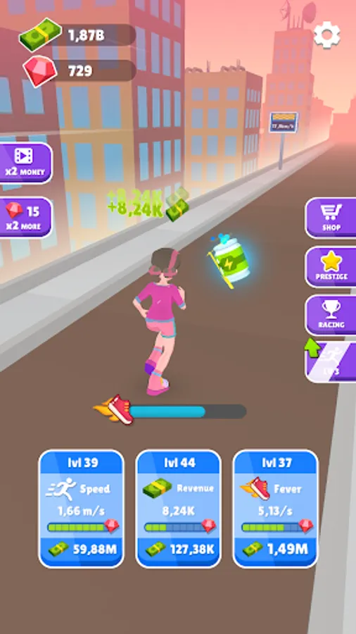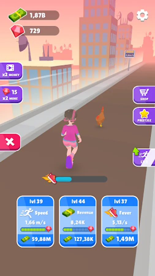 Also, once you collect lots of cash and gems and become very rich you can buy lots of new running boots which will boost your running abilities even further!