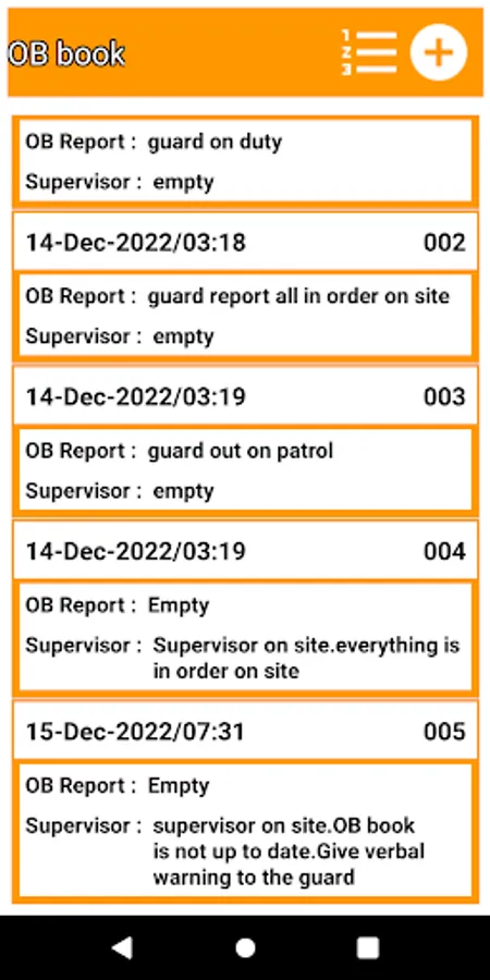 As a PSIRA Security guard you must fill in a OB book on hourly basis that are checked by the supervisor.The supervisor can also set a password to log in as admin and can enter his own entries in the OB book.
