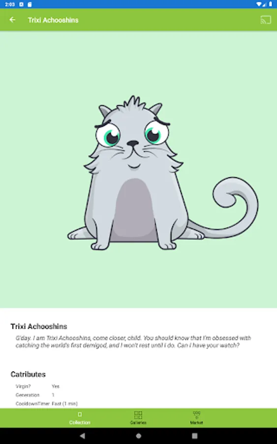 Simply give it the address of the Ethereum wallet that contains your collection and away you go. You can browse your collection or organize it into galleries. You can even use ChromeCasting to display your collectable on a compatible TV or monitor.