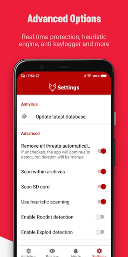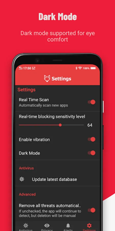 Scans and alerts on malicious apps and other malware using the latest antivirus mobile protection features for your phone even while in offline mode.