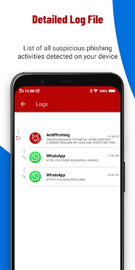 RedFox Anti-Phishing & Scam Detector automatically scans and analyzes every email, SMS and other messages arrive on your device. If a phishing, spoofing or other scam attempt is detected, a warning will appear on the suspicious message and you'll be also informed by a notification.