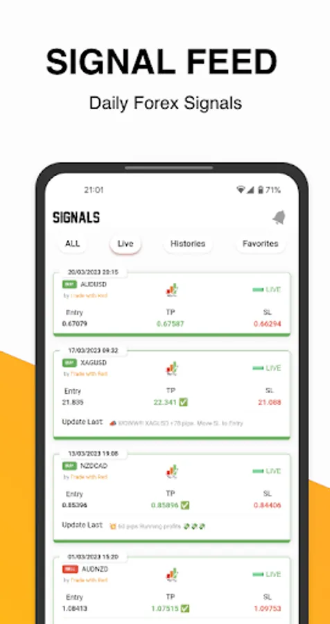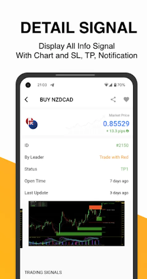 2. Each trading alert will contain information about entry level, Stop loss and Take profit with 3 level