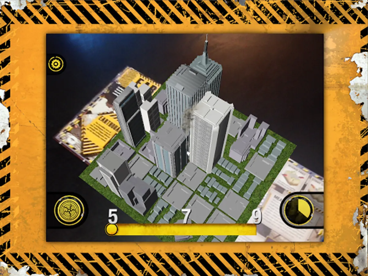 To see the AR sequences in action, find one of the yellow Augmented Reality boxes in the pages of your iStorm book. Then launch the app, turn the volume up to hear the sound effects and point your device’s camera at the page while it is open flat on the floor or a table and watch as the weather comes to life!