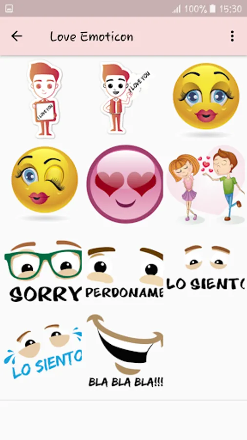 We present an app that provides the ability to share smileys when we are having a conversation that is not so serious and formal, so that we can make more fun. Can be easily shared through the app, WhatsApp, simply save it to your device.