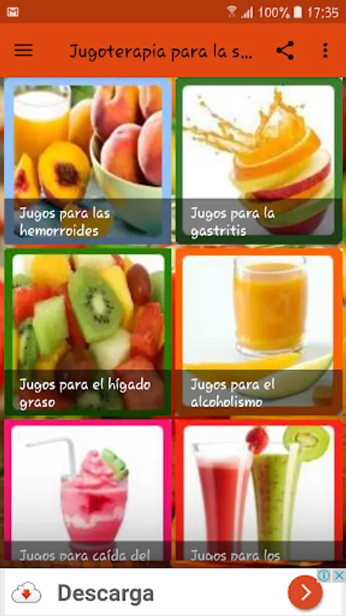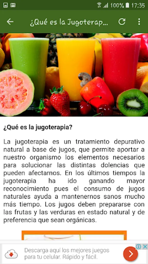 Juice therapy for health is an application that brings the best recipes based on cleansing juices, which allows us to provide our body with the necessary elements to alleviate the different ailments that can affect the human body. In recent times, juice therapy has been gaining more recognition as the consumption of natural juices helps to keep us healthy much longer. The juices should be prepared with fruits and vegetables in their natural state and preferably organic.