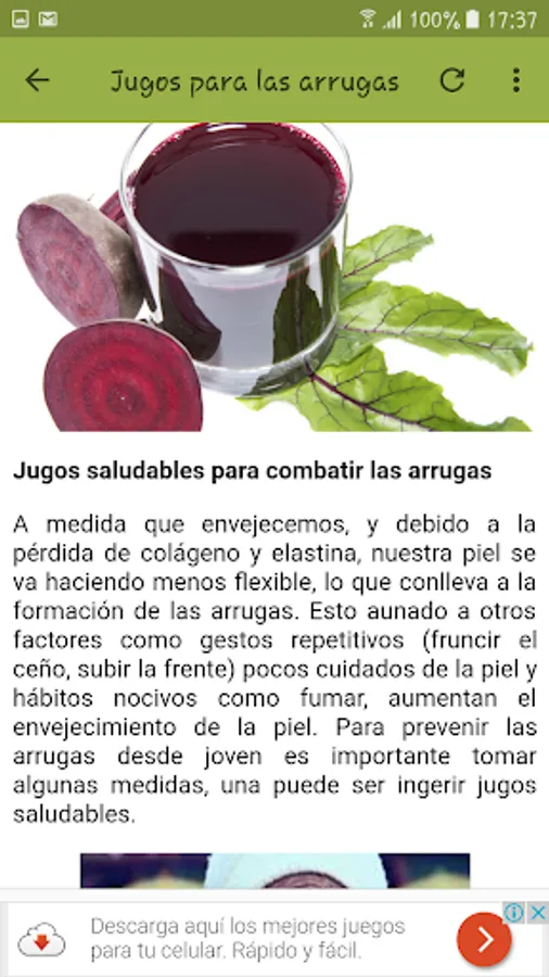 In this application you can find valuable information about juices that could help prevent or mitigate possible diseases such as: