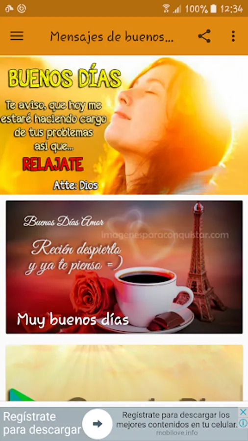 We present a compilation of images with good morning messages so you can share with your loved ones and friends, this app you can say you have an excellent day full of blessings.