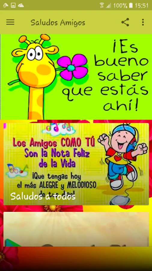 Saludos amigos, is an application that contains a fabulous gallery of beautiful images of flowers with greetings messages of friendship, among others. Contains many emotional to devote to family, friends and special people phrases.