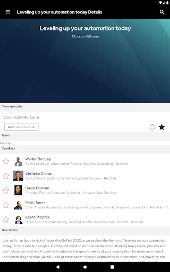 Download our official AnsibleFest 2022 app to get the most of your event experience in Chicago. This app includes: