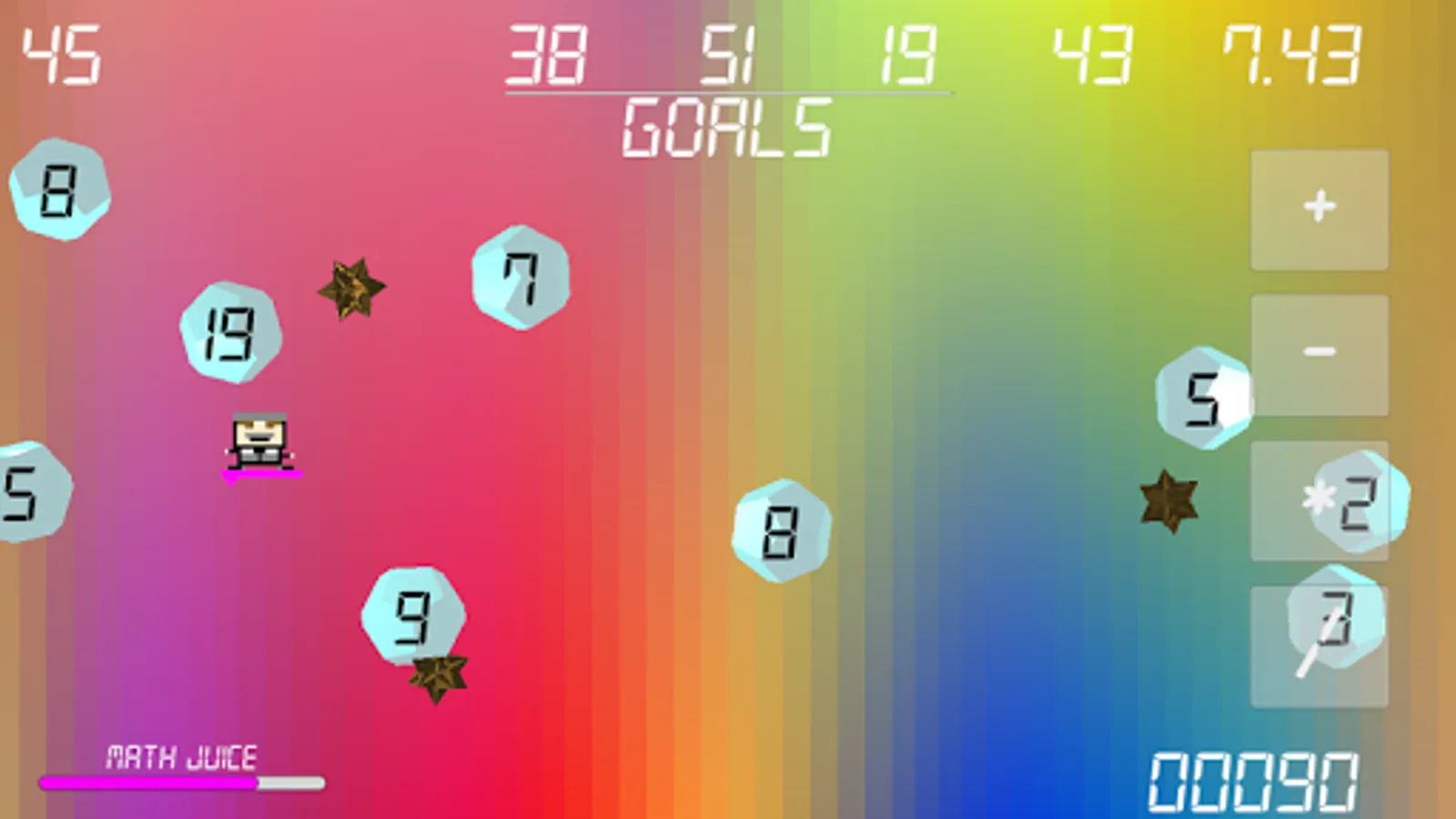 Math Is Stupid is about Richard Nixon sending his arch enemy, Deep Throat, on a crazy cosmic mission to save the everybody ever by solving math equations that keep the fabric of space time intact. The controls are easy. The math is easy but ramps up real quick. You’re flying through space on a purple surfboard and there are cool space effects that I couldn’t figure out how to do myself, but I bought them off a guy on the internet for twenty dollars I think.
