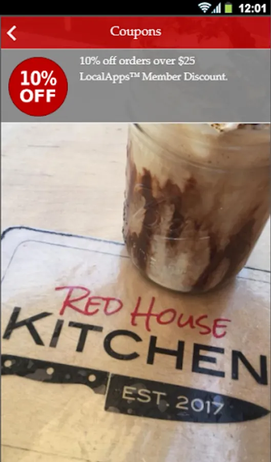 Mobile Rewards App created and managed by LocalApps™ for the Red House Kitchen in Imperial Beach. Keeps track of loyalty rewards and coupons, view menus and order directly from the app, and be notified of specials with optional push notifications.