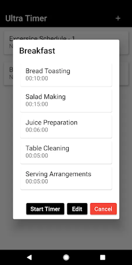 Ultra timer is an easy and simple app for android. It helps us to determine time for our work. We can fix a time for every work through this app and get motivation to finish the work within the specified time. We can plan our daily work and save it once and use it daily.