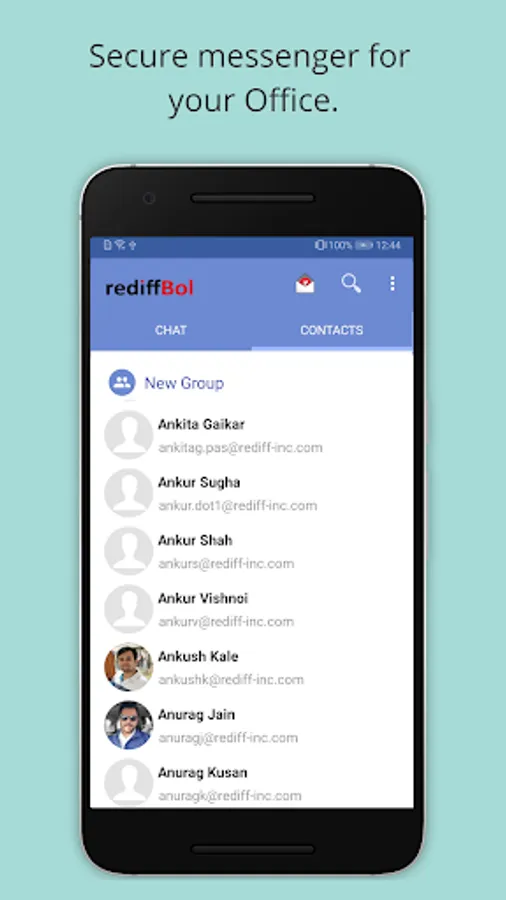 Unlike popular insecure apps, rediffBol Professional uses Company email credentials for login and is centrally controlled by the Admin.