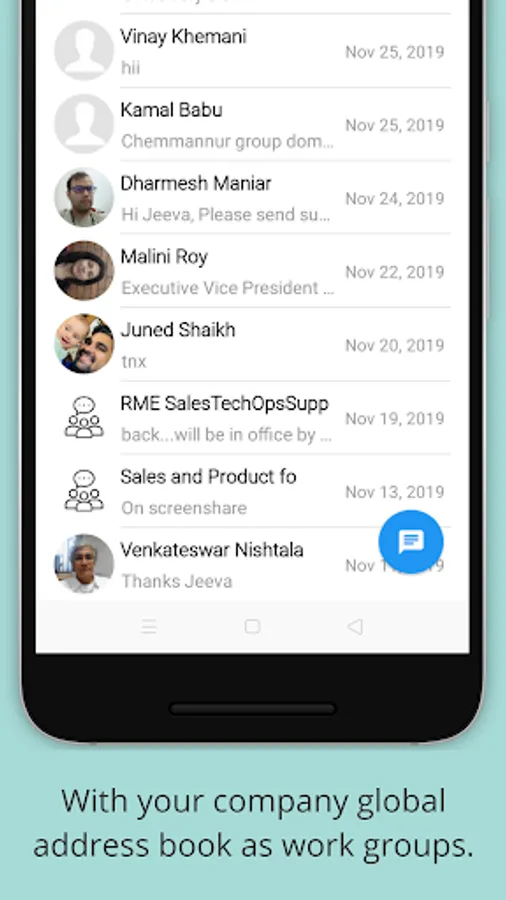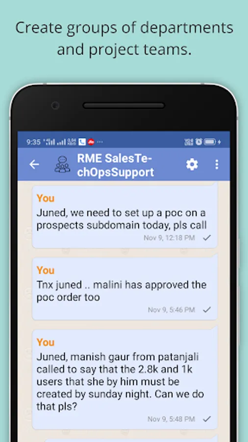 rediffBol Professional is a secured enterprise messaging app, that builds on the popular messaging tools your teams already know how to use. It lets you and your coworkers stay in touch with office conversations, building successful working relationships, no matter where you are. Turn your company into a secure messaging, productive and fun place now, with enterprise controls on users + groups creation and message archive for audit.