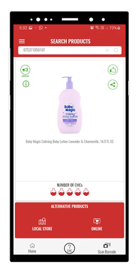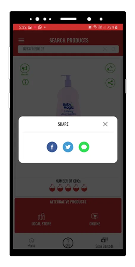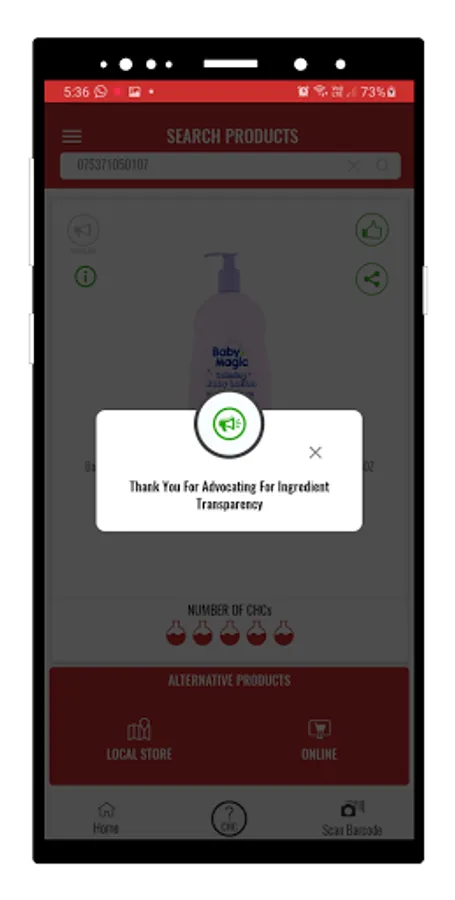 Alternative Products: Gives you the option of purchasing clean alternative either from online (Amazon) or Local stores (Walmart, Target, etc.)