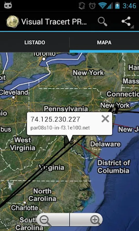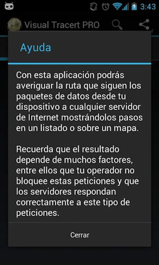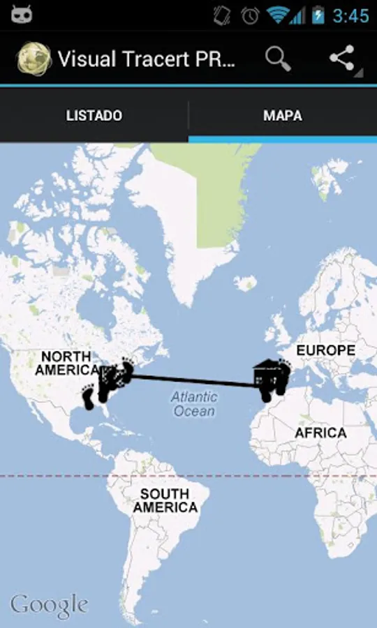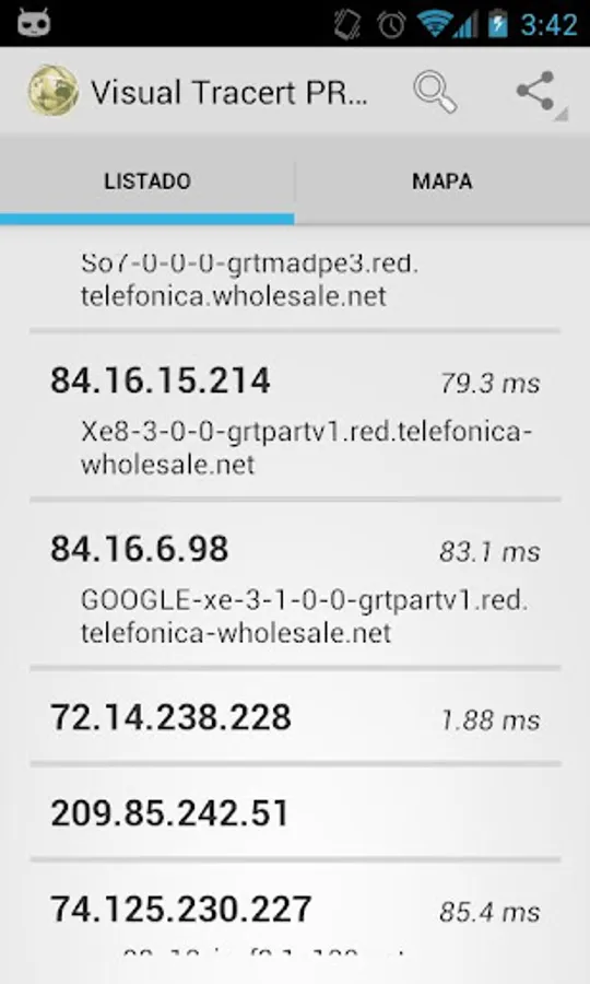 With this application you can know what is the route followed by data packets between your Android device and any Internet server by either entering a website, a domain or its IP directly.