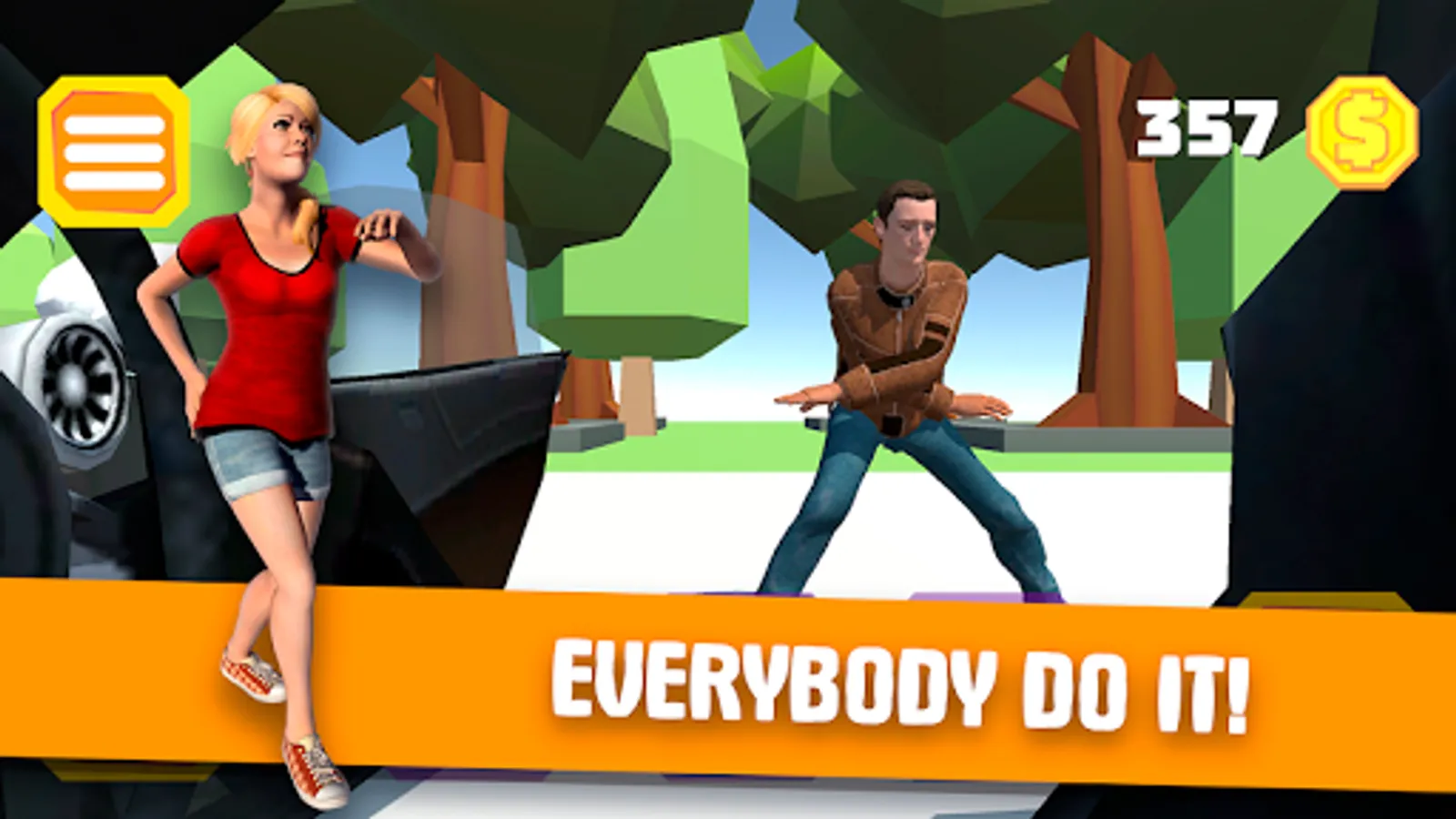 In this dance clash simulator, you will have a chance to take part in the popular kiki dance battle challenge. Start moving in your car, turn on the song of do you love me dance clash, get out of the car and start your keke battle. But many an obstacle awaits you on your way. Your goal in this simulator is not to bump into trees, street signs, and cars. Evade them and complete your do you love me dance battle to succeed in kiki dance clash challenge. You must not miss a chance to take part in this popular do you love me dance battle challenge, so prepare for the dance clash with other players. Show the world that you are the best dancer and can complete the do you love me dance battle challenge without being injured by obstacles.