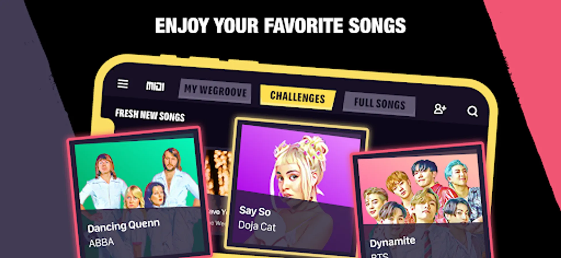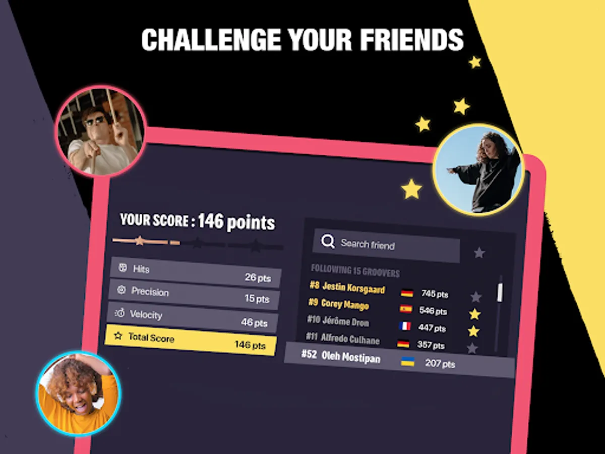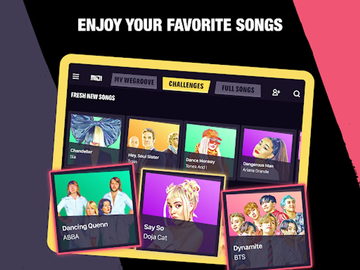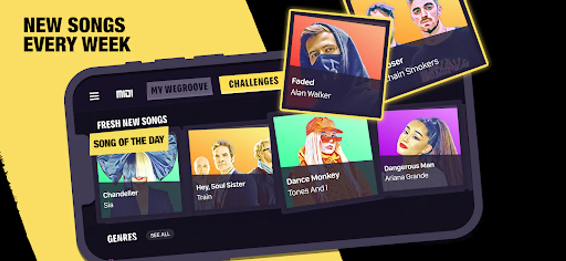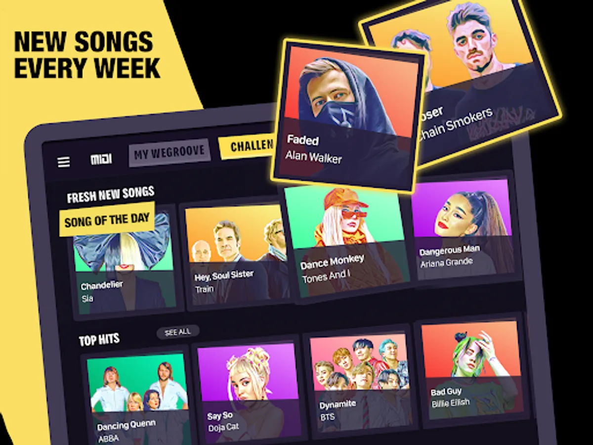 With WeGroove, play your favorite music styles, play along hundreds of songs on a virtual drum kit. Just tap and instantly hear the kick drums, cymbals, or snare drums! Practice percussions with the lessons whether you are a beginner or a pro drummer: choose the difficulty level that suits you.