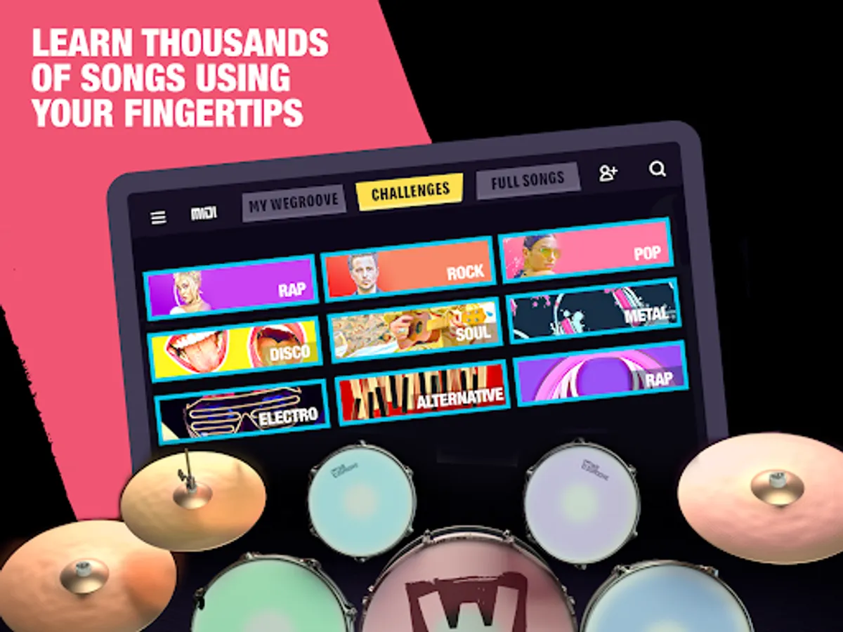 - WeGroove allows you to learn to play the drums whenever and however you want, thanks to a huge sample of rhythms from hundreds of songs