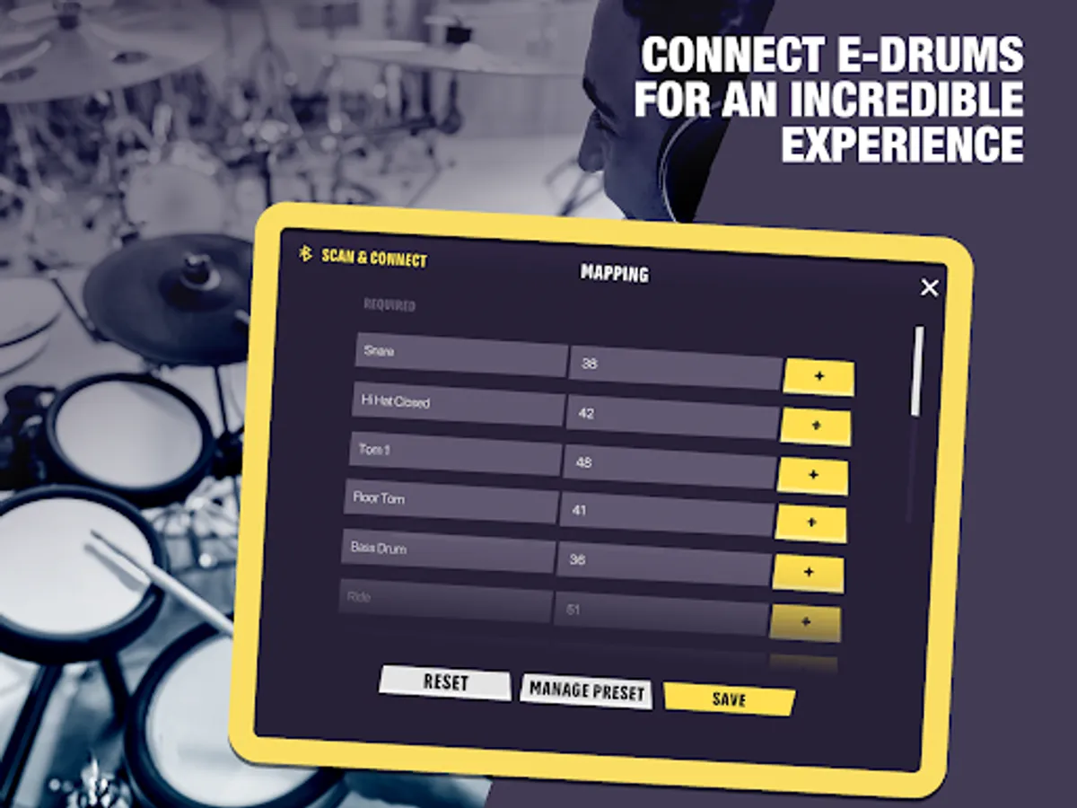 - Connect your edrums, multipad, sampler or midi device to the app for a Guitar Hero experience