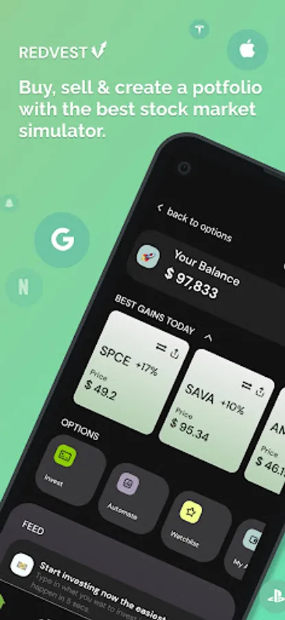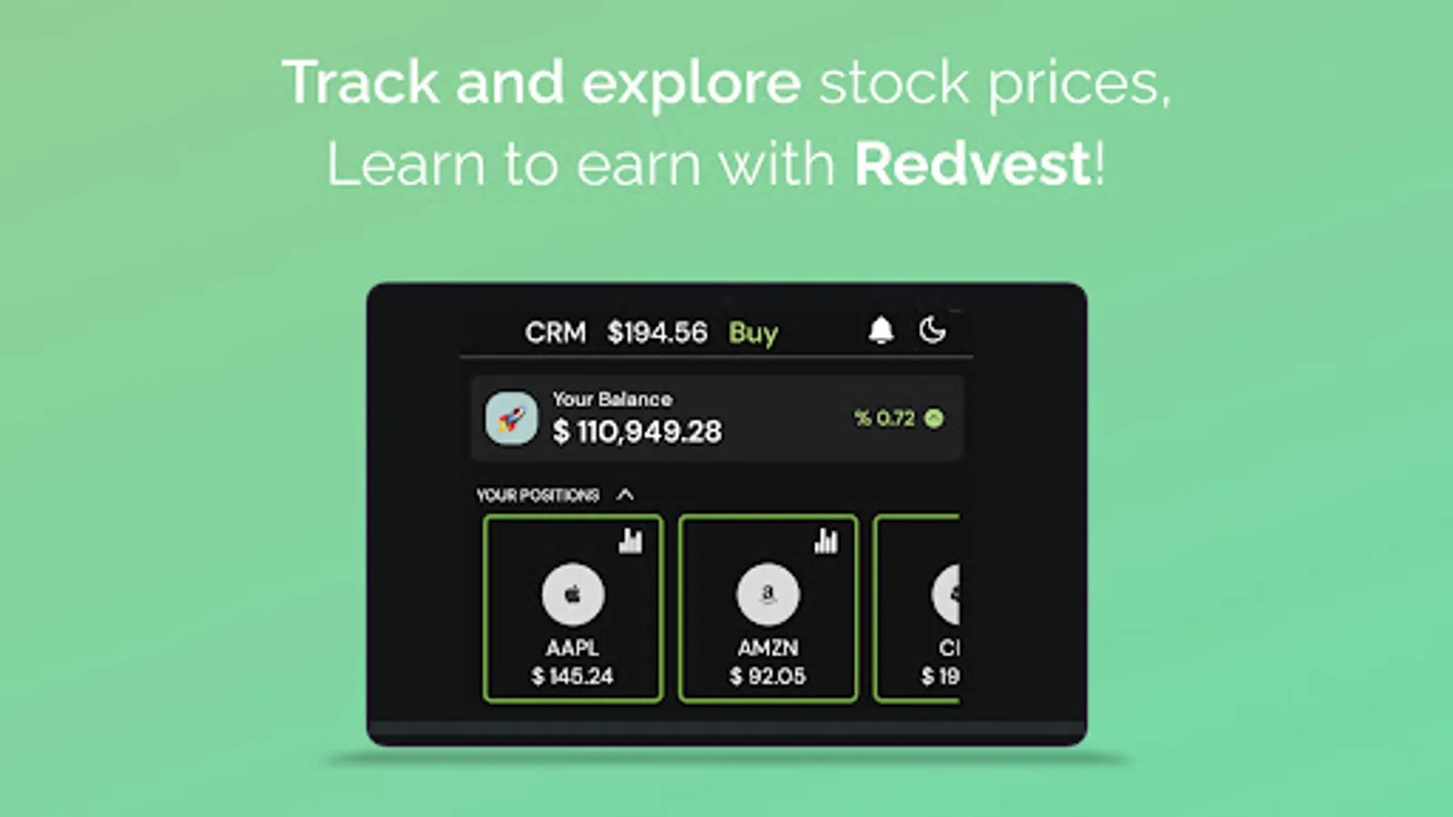 First learn to trade and then switch to real money! All in one! Redvest is the perfect app for anyone who wants to learn to trade.