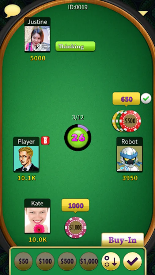 Our incredible free card game offers everything you look in a high quality cards & dice app: Stunning HD Graphics, Simple tutorials, easy one-thumb one-touch controls, Quick & Responsive Connection to our servers and of course, unlimited fun! No deposit required, and of course, no real money is involved, so if you run out of money to bet, we’ll give a refund so you can keep playing! We provide you with unlimited free chips, because here, the players always win instead of the house! Play in all the rooms we have prepared for you, and enjoy the relaxing music that will help you to focus on your pokar strategy! Our game also offers 15 computer players for you to train your skills! Begin building your three poker hands now & claim your victory!