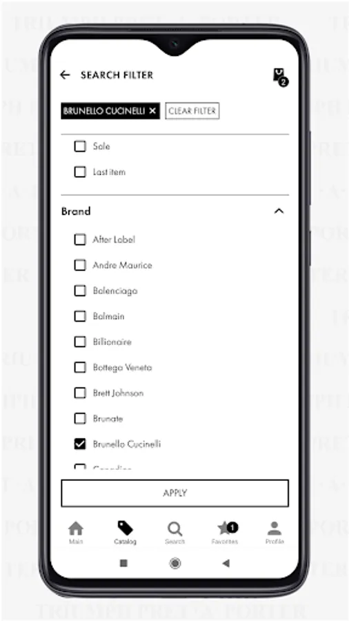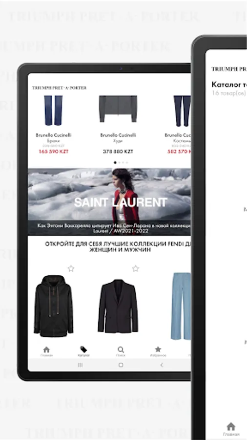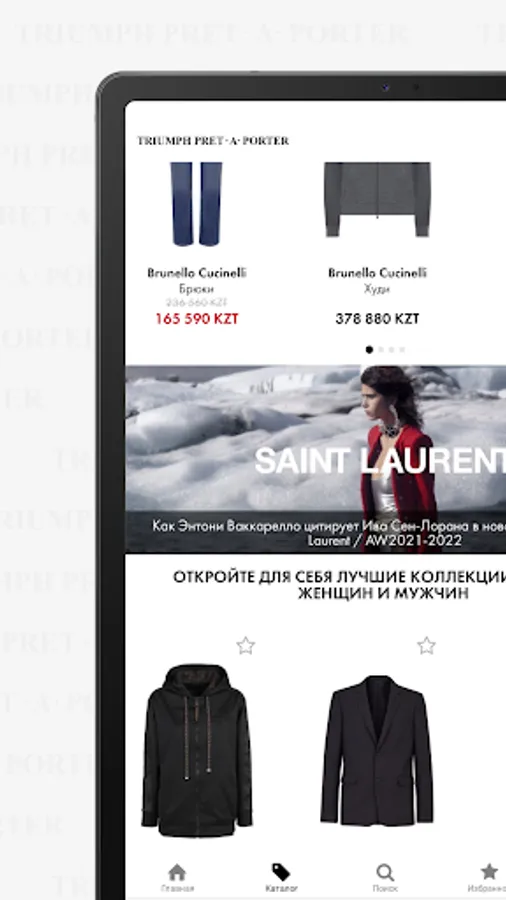 The TRIUMPH PRET•A•PORTER app is the purchase of clothes, shoes and accessories in a couple of clicks! Thanks to convenient and clear filters, it will help you to navigate the variety of exclusive new products, brands and current trends online.