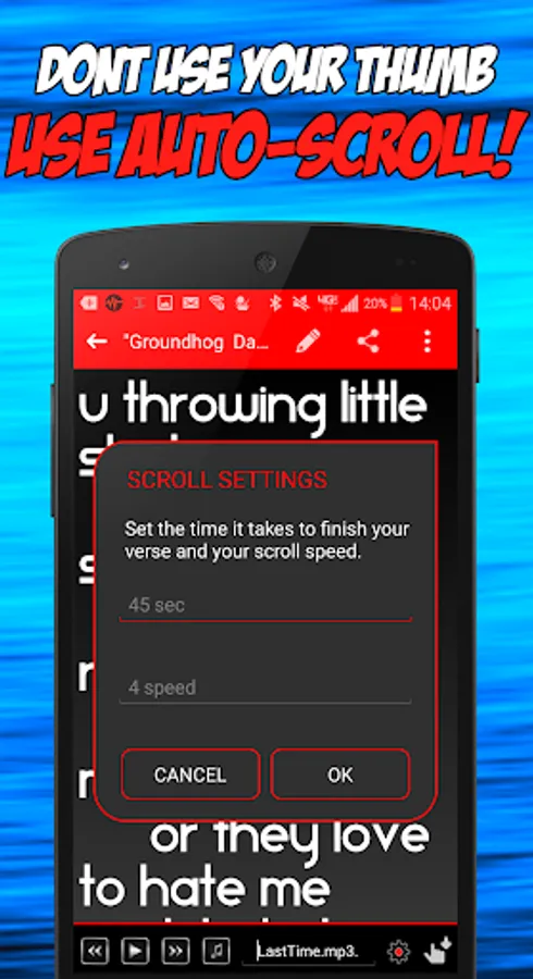 Write Songs has the ability to store and share lyrics, a quick rhyming dictionary and a voice recorder all in one place. Write Songs keeps everything backed up and in sync on your SD card. Come experience the luxury of mobile songwriting today!