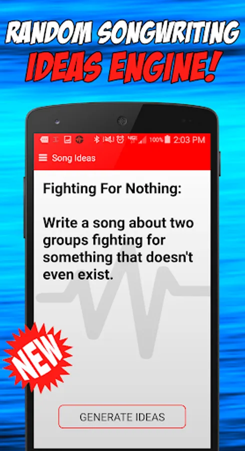 The song ideas generator is a perfect tool and can kickstart an audio voice recorder session, sending you on the way to writing your next hit song!