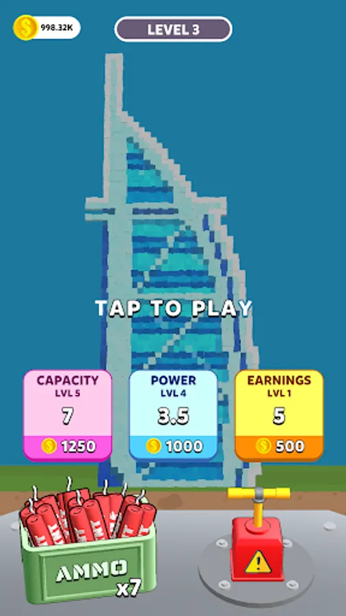 Drag and place your explosives, pull the lever to explode. Destroy em' all and have fun!
