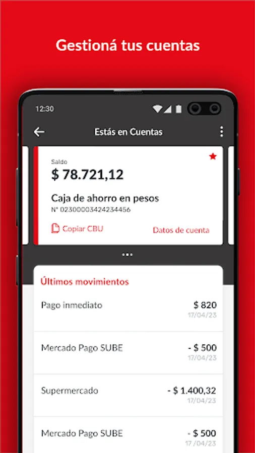 • Check your CBU, balances and movements