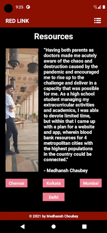 This app shows the blood bank list in Delhi, Chennai,Kolkata and Mumbai.
