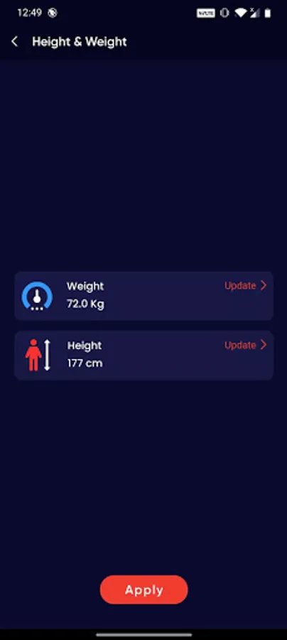 This feature is in development phase for now and just recording weight and height manually by user input and it stores locally every time the user input/changes.