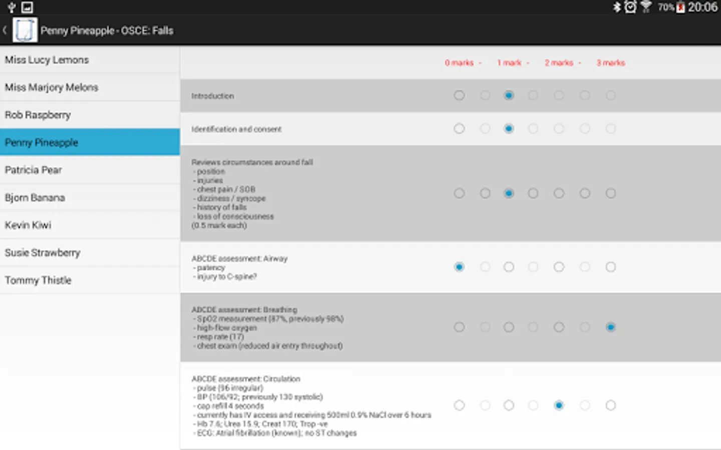 This app allows assessors who have been assigned to mark specific stations to go in and mark their candidates. More advanced features, such as OSCE design and assigning of assessors, can be achieved through the website at oscerunner.com.