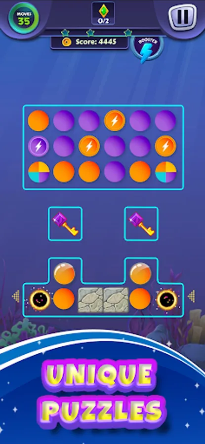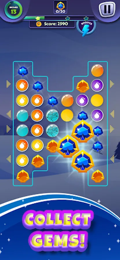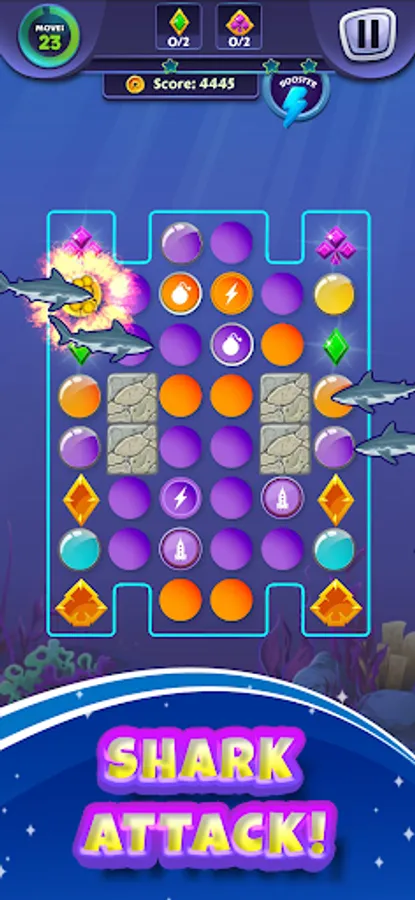 Your mission? Collect sparkling gems through strategic moves, unlocking hidden treasures that await. Need an extra edge? Unleash the power of boosters – soar high with a plane dropping powerful bombs or dive deep with a school of sharks that expertly pop the dots.