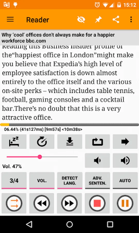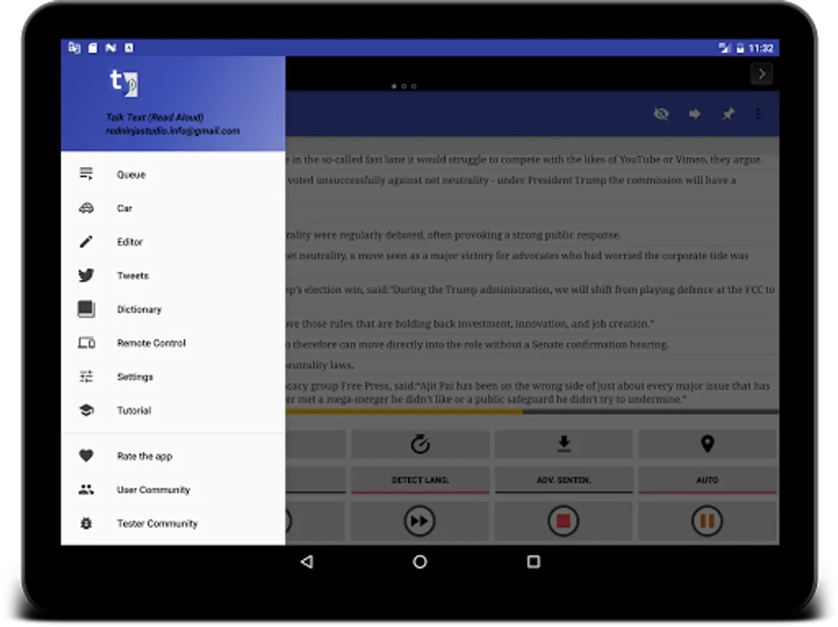 -Read text from other apps (RSS Readers, Email Readers, Browsers, ...).