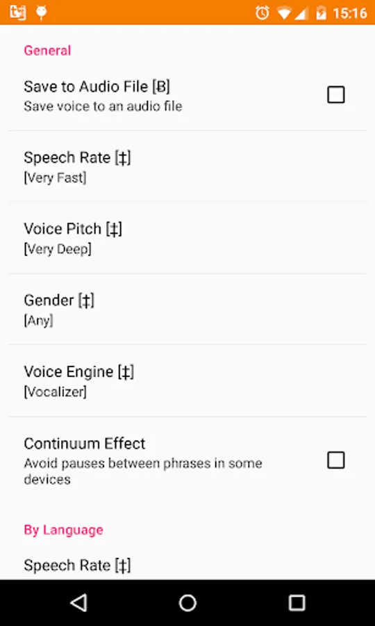 Depending on the TTS engine, some languages that appear in the app may not work, but you'll be able to download others from Google Play.