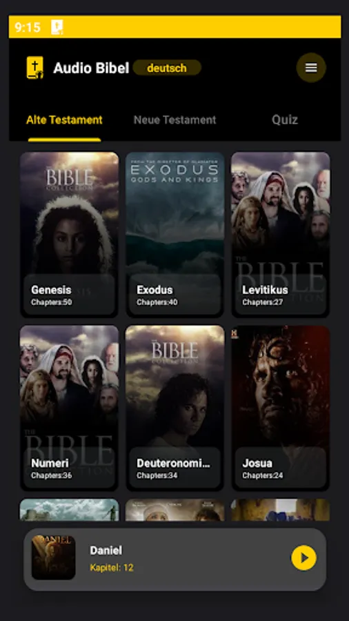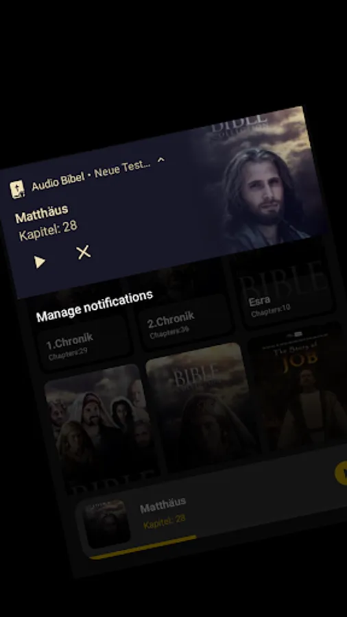 Our app allows you to listen to all Audio German Bible and Internet German Bible Audio. Choose what you want to hear: THE OLD TESTAMENT and THE NEW TESTAMENT!