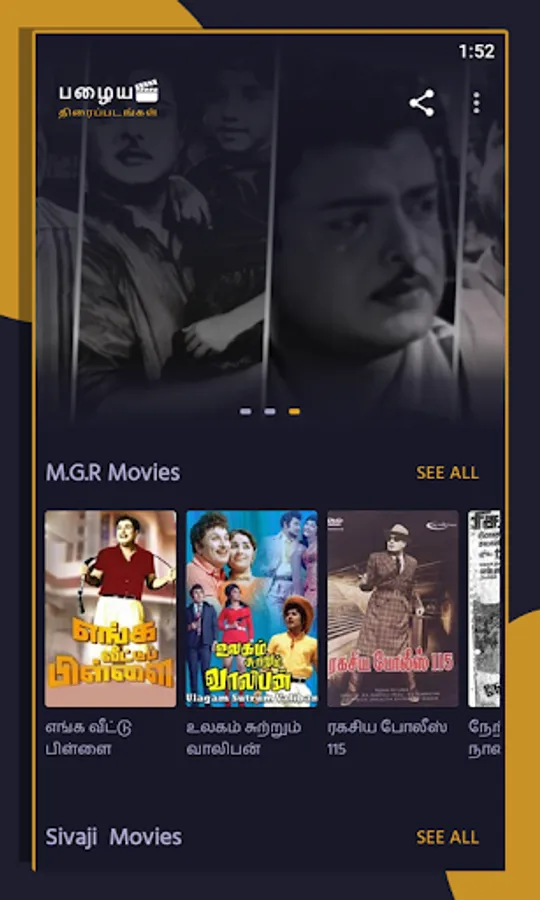 Enjoy critically acclaimed classic movies such as: Enga Veettu Pillai, Ratha kanneer, Veerapandiya Kattabomman, among others.
