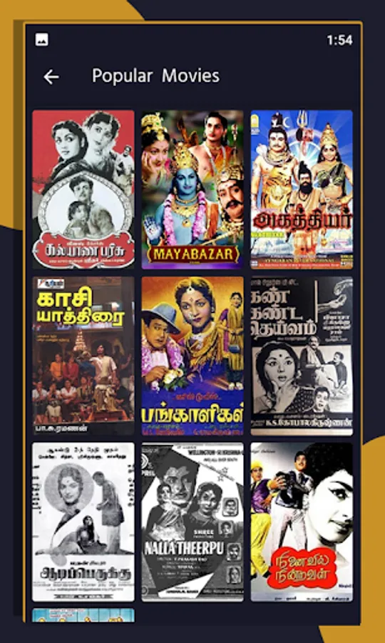 Watch full movies from the classical Tamil cinema.