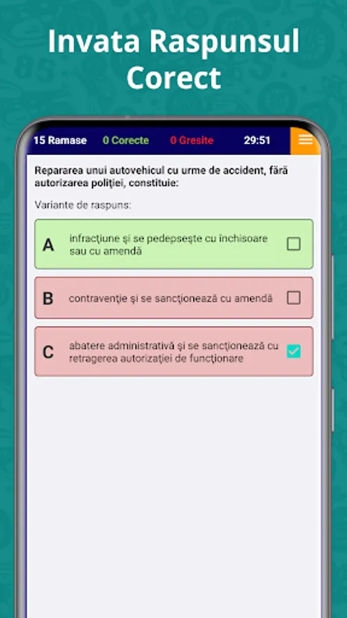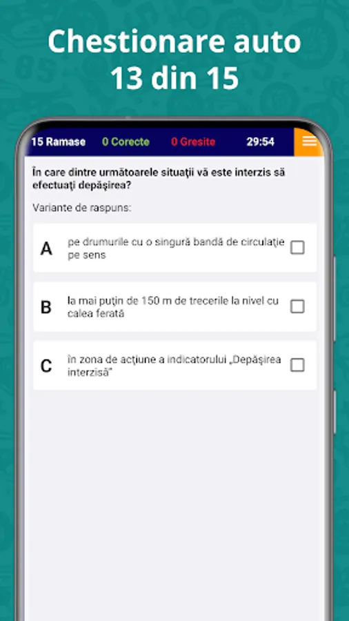 Thank you for choosing our questionnaire application 13 of 15 for License recovery and we wish you maximum score in the driving test!