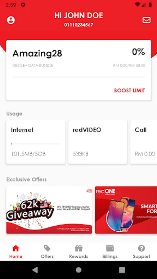 Download the redONE 1App (MY) to manage your Malaysia postpaid account easily!